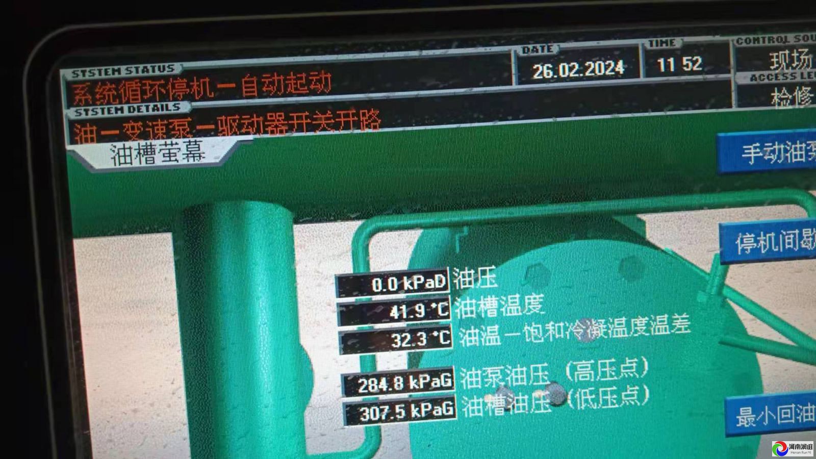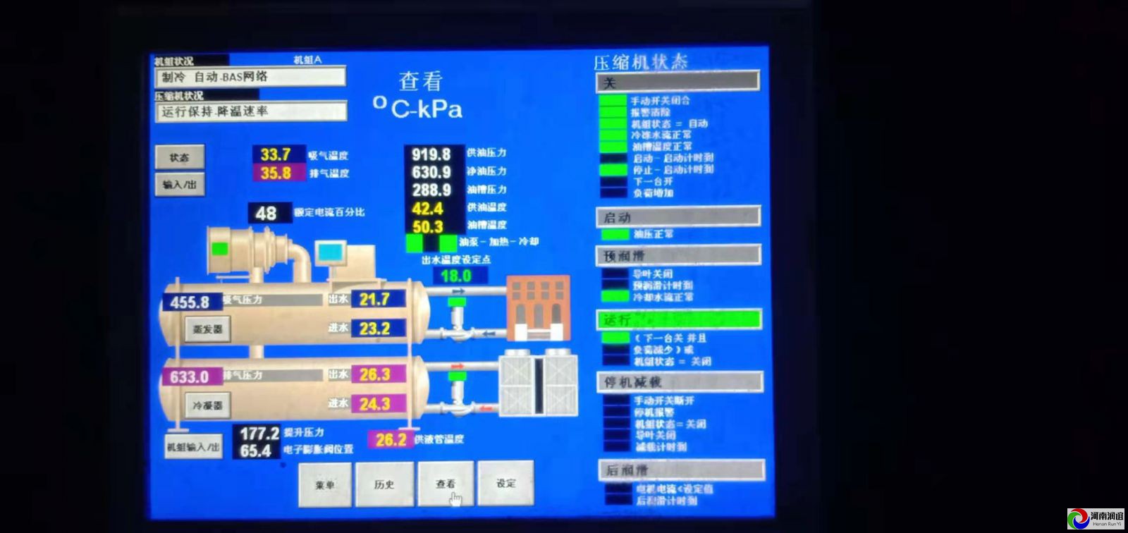 美的離心式中央空調機組啟動前檢查 按下列項目進行制冷機啟動前的操作確認: (1)油箱內油位正確最高油位視液鏡中部附近。 (2)油溫正確機組初次安裝投運前或機組長期斷電、